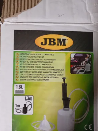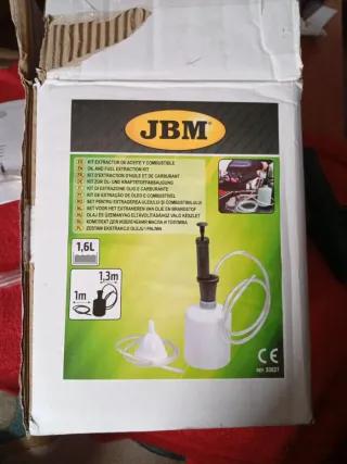 Kit de extracción de líquidos JBM. - Capacidad de 1,6L. - Manguera de 1m y 1,3m de longitud. - Incluye embudo.