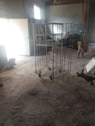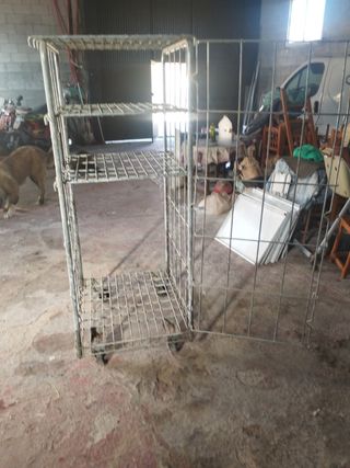 Roll container se usaba para el trasporte con tres lejas hierro de 10 y de 8 mazizo las ruedas giran bien