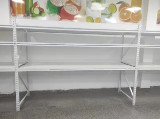 Estanterías metálicas lacadas de color blanco, ideales para supermercados o almacenes. - Estructura robusta. - Múltiples baldas con sus tableros de madera. - Diseño modular. Medidas de largo: 2,82m Medidas de ancho: 82cm Medidas de alto: 2m