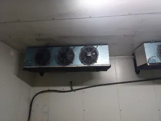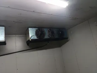 Se vende cámara frigorífica industrial, ideal para negocios que requieren control de temperatura. - Unidad de refrigeración con tres ventiladores. - Panel de control visible. - Estructura metálica. 2 motores 2 evaporadores Se puede convertir en 2 cámaras si lo deseas Puerta de 1.5x2.5