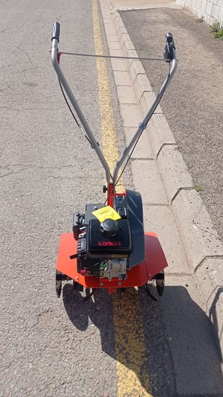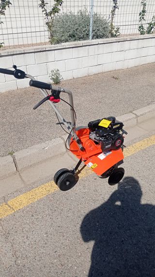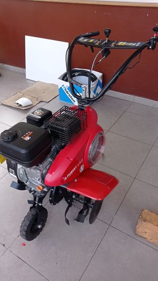 Motoazada Alpex, motor 5,5 HP, 1 velocidad, ancho trabajo 90cm, profundidad 25cm, cuchillas 6, disco protector de plantas, ruda transporte, tipo de transmisión cadena y engranaje en baño de aceite+correa. PVP 545€ IVA INCLUIDO