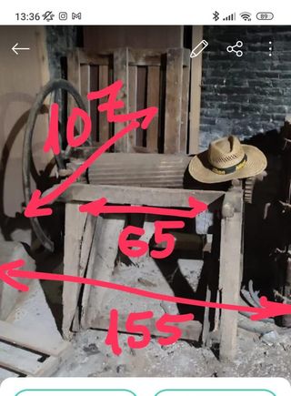 Preciosa herramienta antigua para prensar uvas, ideal para decoración rústica. Se encuentra en buen estado de conservación, considerando su antigüedad. - Mecanismo de manivela. - Estructura de madera resistente. - Ideal para decoración o coleccionismo.