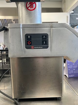 Cortadora de hortalizas de la marca Sammic modelo CA-31 monofasico. Fabricada en acero inoxidable. +6 accesorios (5 de corte y herramienta para vaciar la cortadora de brunoise) Muy buen estado, tiene muy pocos usos. Precios comprarlo nuevo: Rejilla cubos 20/20 131€ Rejilla brunoise 91€ Disco juliana 172€ Disco midepoix/laminas (2 tamaños) 99€ cada uno Accesorio para remover hortalizas de la rejilla 120€ Cortadora 1125,30€ Valor de todo nuevo: 1837,30€ Precio de venda: 1000€