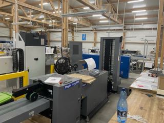 Plegadora Heidelberg Stahlfolder KH 82/6 KTL - PFX. Heidelberg Stahlfolder KH 82/6 KTL – PFX Ancho: 82 cm Año: 2014 Plegadora de papel totalmente automática Control por ordenador con pantalla táctil Alimentador de palets PFX para entrada continua Kit de automatización del alimentador Grupo de cuchillas previo 6 bolsas de plegado en la sección de plegado paralelo Grupo de cuchillas posterior Lift Kit Automation Kit II Ajuste automático de bolsas Ajuste automático de rodillos Bolsa de plegado en ventana neumática Unidad de control ACC 2.4 2 cuchillas de plegado en la sección de plegado cruzado 1 bolsa de plegado adicional después del