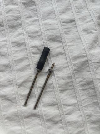 Tornillo con rosca y arandela y fresa de recubrimiento negro cilíndrico - Incluye un tornillo y una arandela. - Fresa con mango negro. - Piezas usadas, en aparente buen estado.