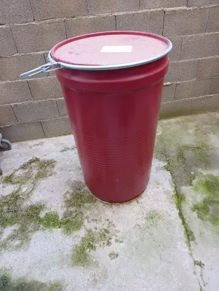 Bidón metálico de color rojo con tapa y cierre. Nuevo - Material: Metal. - Color: Rojo. - Incluye tapa y sistema de cierre.