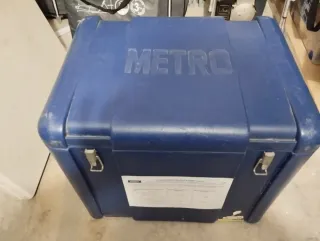 Contenedor de transporte de la marca METRO.caracteristicas en fotos - Color azul. - Cierre con pestillos metálicos.