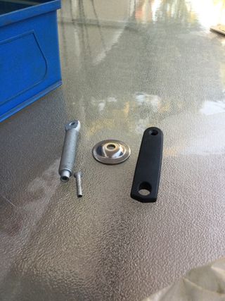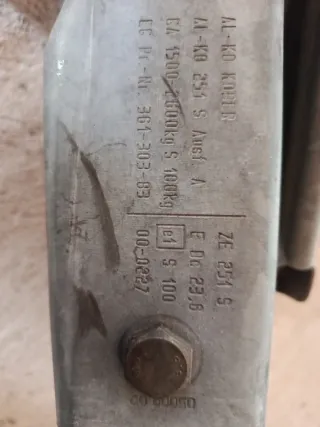 Enganche de remolque metálico. - Mecanismo de freno. - Funda de goma protectora. - Palanca de accionamiento. -Sin la cabeza de remolque, está tal como se aprecia en las fotos.