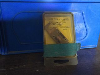 Fusible de alta amperaje Blue Sea Systems de 300 AMP, en su empaque original. Parece estar en buenas condiciones. - Marca: Blue Sea Systems - Amperaje: 300 AMP - Interrupt Rating: 6000A