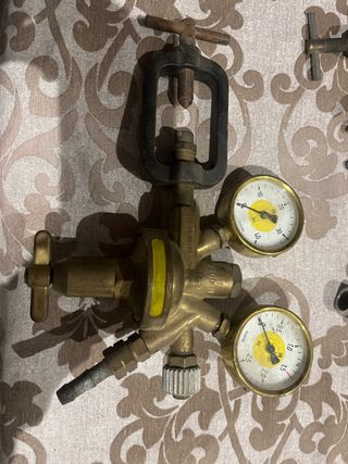 Regulador de presión para oxígeno, fabricado en latón. Cuenta con dos manómetros para control. - Dos manómetros incluidos. - Construcción en latón.