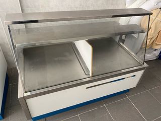 Vitrinas expositoras con estructura de acero inoxidable y cristal. La grande tiene frio, la pequeña no. No estan nuevas. Pero para el precio son una ganga las 2. El precio es por las 2 vitrinas. Se venden juntas. Medidas: Grande: alto 120cm fondo 87cm ancho 200cm Pequeña: alto 120cm fondo 87cm ancho 150cm - Diseño moderno y funcional. - Superficies de exposición amplias. - Base blanca con detalles en azul.