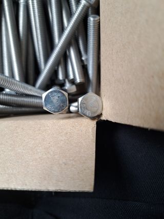 Se venden tornillos de acero inoxidable. Son ideales para proyectos de bricolaje o reparaciones. - Medida: M6x15 - Material: Acero inoxidable - Cantidad: Aprox. 50 unidades - Aspecto: Los tornillos se ven en buen estado, brillantes y sin daños visibles.