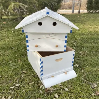 Colmena automática tipo FlowHive / AutoFrame nueva y sin estrenar. Incluye cuadros automáticos interiores para extracción de miel sin desmontar la colmena ni molestar a las abejas. Fabricada en madera de calidad, muy robusta, con buen acabado y pintada para mayor protección frente a la intemperie. Cuenta con ventanas de inspección, buena ventilación y techo resistente. Ideal para inciarse o aumentar colmenar. Apicultura, colmena, colmenas, apicultor, miel, abejas, Flow Hive, AutoFrame, FlowHive? colmena automática, colmena langstroth, colmena dadant.