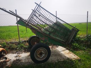 Remolque basculante de la marca Carmelo Rico con capacidad de 6000 kg. - Color azul y blanco. - Estructura metálica robusta. - Ruedas en buen estado.