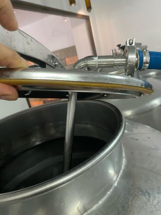 deposito de fermentacion atmosferica de cerveza con camisa doble de frio y aislado completamente - para control de frio absoluta - termowell para sensor de temperatura, 650 litros de capacidad bruta - made in Spain. se puede ver y probar en Conil cadiz . NO ES ISOBARICA !
