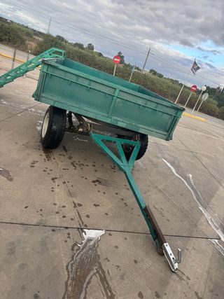 Remolque agrícola de color verde, ideal para trabajos en el campo o transporte. -perfecto para remolque de romería - Estructura metálica resistente. - Escalera de acceso incorporada. - Ruedas neumáticas.