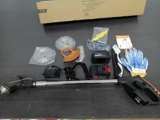 Desbrozadora a batería de 21V, ideal para el cuidado de tu jardín. - Incluye dos baterías de 21V. - Viene con dos discos de corte. - Incluye guantes de protección. - Mango auxiliar para mayor comodidad. - Protector de corte. Usada