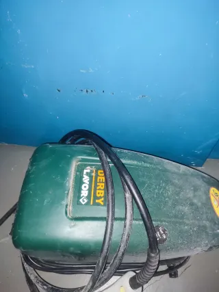 Hidrolimpiadora Kärcher en color verde y gris. - Incluye lanza y depósito para detergente. - Manguera de alta presión.