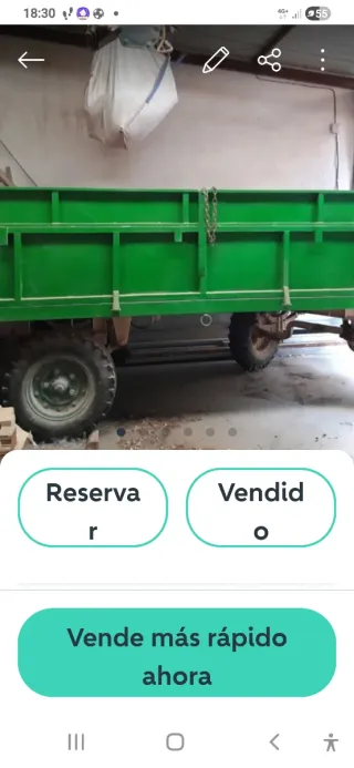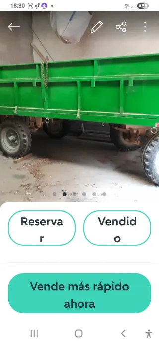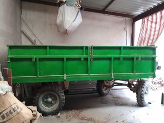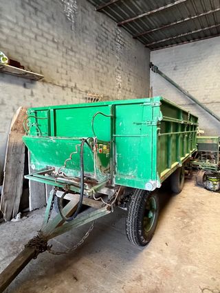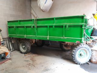 Se venden dos remolques agrícolas de color verde, 1 de ellos basculante. - Estructura metálica. - Ruedas de goma. - Cadenas de seguridad.