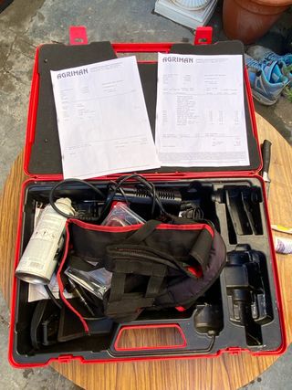 Tijeras eléctricas de podar Agriman en su maletín. - Incluye maletín de transporte. - Incluye manuales y accesorios.