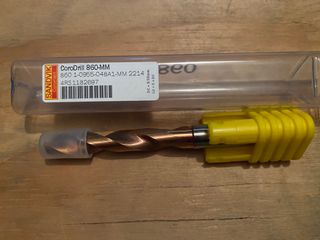 Broca Sandvik CoroDrill 860-MM. - Modelo: 860.1-0955-048A1-MM 2214 - Diámetro de corte (DC): 9.55mm - Longitud útil (LU): 5 x DC - Número de artículo: 4RS1182697