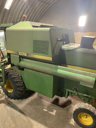 Cosechadora John Deere 1072, en uso y funcionando, con 6.000 horas. Motor John Deere 6 cilindros diésel, transmisión mecánica. Sistema de trilla convencional con 5 sacudidores. Cabezal de 4,8 m de corte, ideal para cereales. Máquina robusta y sencilla, mantenimiento económico