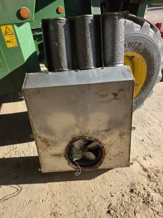Sistema de refrigeración para cabina de cosechadora. Incluye ventilador y filtros. - Ventilador con aspas. - Tres filtros cilíndricos metálicos.