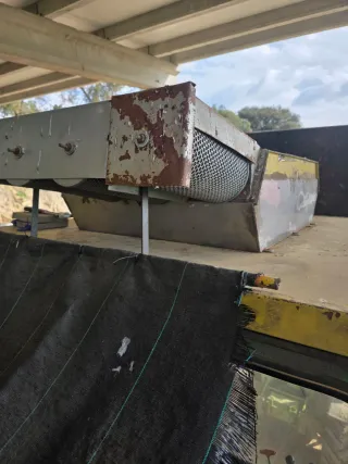 Mesa para pelado y triturado de cosechas. Ideal para facilitar el proceso. - Estructura metálica. - Cubeta de malla negra. - Tapa amarilla con rejilla.