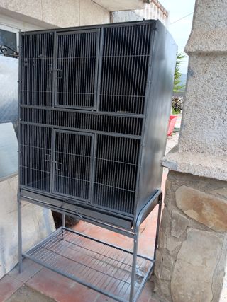 Una haula de hierro para pajaros esta compuesta de dos partes que se puede separar para no sea tan alta