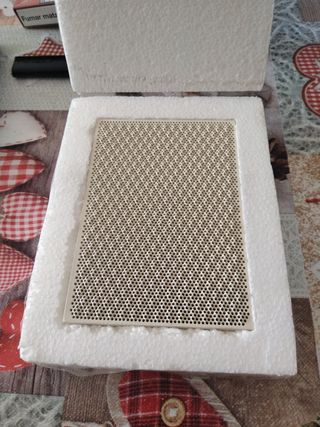 Placa cerámica para quemador, en perfecto estado. Sin uso, completamente nuevo. - Ideal para quemadores de gas. - Material cerámico resistente al calor. - Color beige claro. - Forma cuadrada. 14 cm largox10 ancho