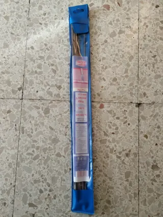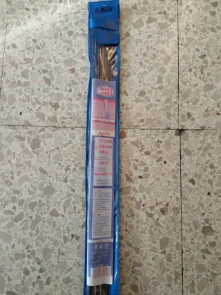 Lote de varillas de soldadura. - Contiene 250 g de varillas. - Diámetro: 2 mm. - Longitud: 500 mm. - Composición: Ag 2%. - Temperatura de trabajo: 645-825 °C.