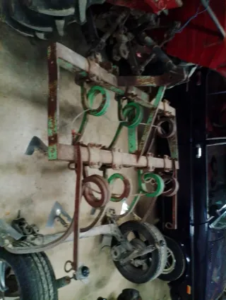 Conjunto de aperos para tractor pequeño. Ideal para trabajos agrícolas. 7 brazos - Estructura metálica robusta. - Varios elementos de labranza. - Pintura verde y óxido.