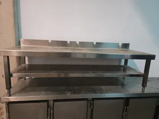 Estantería de acero inoxidable para colocar sobre una encimera. Ideal para cocinas o espacios de trabajo. 180 ancho 60 fondo 54 alto - Fabricada en acero inoxidable. - Dos niveles de estantería. - Patas ajustables en altura.