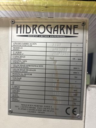 Plegadora hidráulica marca Garnet. - Capacidad de 160 toneladas. - Longitud de plegado de 3 metros. perfecto estado año 2007