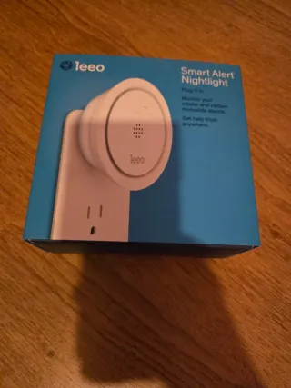 Leeo Smart Alert Nightlight, un detector de humo y monóxido de carbono. - Se enchufa directamente a la toma de corriente. - Monitorea tu hogar. - Te permite recibir ayuda desde cualquier lugar.