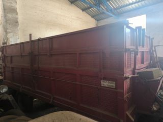 Remolque de gran capacidad con una carga útil de 8000 kg. Tfno 669600494. - Frenos en las 4 ruedas. - Basculante hacia atrás. - Rueda de repuesto nueva. - 4 Ruedas al 90%. - Color azul y verde. - Diseño robusto para transporte. - Ideal para trabajos agrícolas o de carga. - Cadenas incluidas.