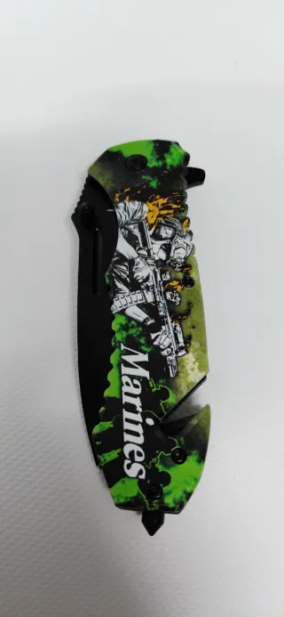 Navaja con diseño de Marines y camuflaje verde. - Hoja acero inoxidable 9 cm - Mango con texto Marines. - Cachas ergonómica 12'5 cm - Navaja totalmente legal - Navaja totalmente nueva - Apertura y cierre a dos manos - Navaja rescate salvamento táctica - Hago envíos - Precio fijo no negociable Third Crossnar Palmeira cudeman Noteme Junior Joker Boker Magnum