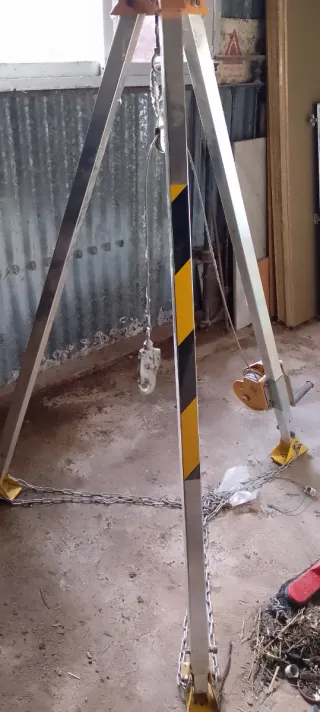 Equipo para trabajos en pozos. - Estructura metálica robusta. - Incluye cadena y gancho. - Sistema de polea y cabrestante.