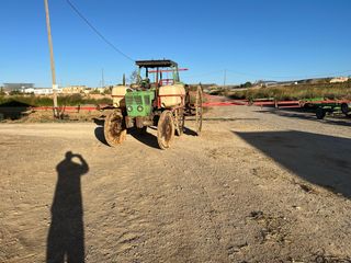 Tractor Deutz en color verde, equipado para trabajos arroceros. Incluye dos depósitos. - Tractor deutz 100 06 110cv -Equipo herbicida 800litros con brazos hidraulicos de 18metros. -Juego ruedas fangeo. -Juego de ruedas goma. -juego de ruedas puas