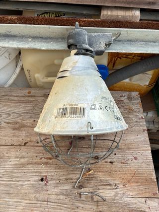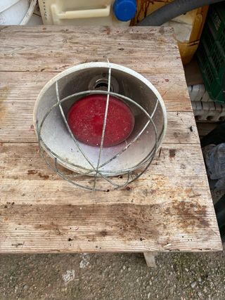 Lámpara de calor con protector metálico y bombilla roja. - Ideal para mantener la temperatura de animales jóvenes. - Estructura de metal resistente. - Bombilla de color rojo.