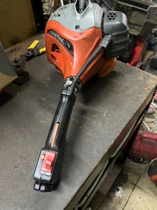 Motor de desbrozadora de la marca Hitachi tiene mal la campana del embrague, el motor arranca pero hay que revisar carburador, años parado.