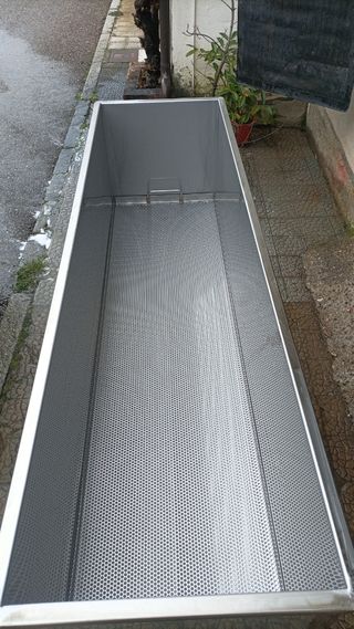 Banco desopercular totalmente nuevo, fabricado en acero inox 316. Dispone de fondo inclinado para que caiga la miel hacia la válvula. También incorpora criba para que esculle el opérculo. Dispone de ruedas con freno muy cómodas para moverlo si hace falta. Gran capacidad de trabajo gracias al 150 cm de largo. Para más información preguntar sin compromiso.