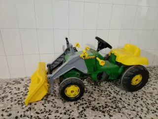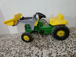 Tractor de pedales John Deere con pala frontal, ideal para que los más pequeños disfruten jugando. - Diseño robusto y colorido. - Pala frontal funcional. - Volante para dirección.
