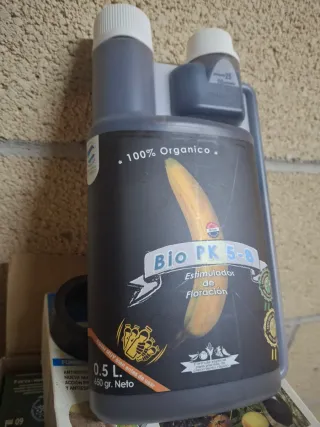 Fertilizante líquido Bio PK 5-8, 100% orgánico, ideal para la floración de tus plantas. Presentación de 0.5 Litros. - Estimulador de floración. - Formato: 0.5 L. - Peso Neto: 650 gr.