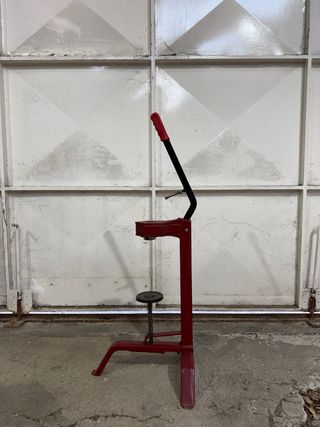 Máquina embotelladora manual de color rojo. - Estructura metálica. - Base estable.