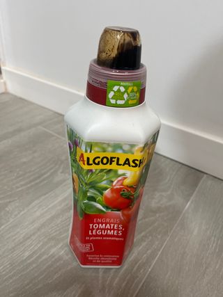 Abono líquido Algoflash para el cultivo de tomates, verduras y plantas aromáticas. Ayuda a favorecer el crecimiento y obtener cosechas abundantes y de calidad. - Botella de 1L. - 90% reciclable.