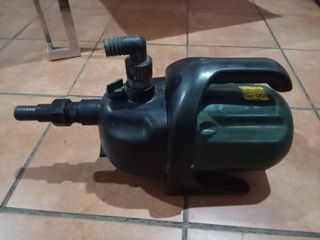 Bomba de achique de superficie. - Cuerpo principal de plástico negro. - Asa de transporte integrada. - Conexiones para manguera.