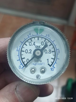 Manómetro de presión SMC G-46 en buen estado. - Marca: SMC - Modelo: G-46 - Rango de medición: 0-1 MPa (0-10 kgf/cm²) - Conexión: Rosca macho (ver imagen) - Incluye 2 tornillos de fijación.
