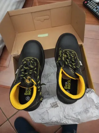 Botas de seguridad de color negro con detalles en amarillo Seguridad S3.NUEVAS EN SU CAJA SIN ESTRENAR. - Cierre con cordones. - Suela de goma. - Talla 39.