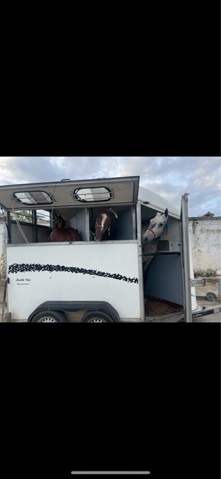 Remolque para transportar hasta tres caballos de la marca Bonilla. - Diseño robusto y funcional. - Espacio para tres caballos. Se vende van de 2 caballos pero caben, en papeles de la Oca pone 3, marca Bonilla, 6 años, pma 2500 kg, espacioso pero muy compacto (no es un parte coches), muy lijero y la mejor estabilidad del mercado. Los caballos viajan en oblicuo, Mejor ver en persona!! 10950 €